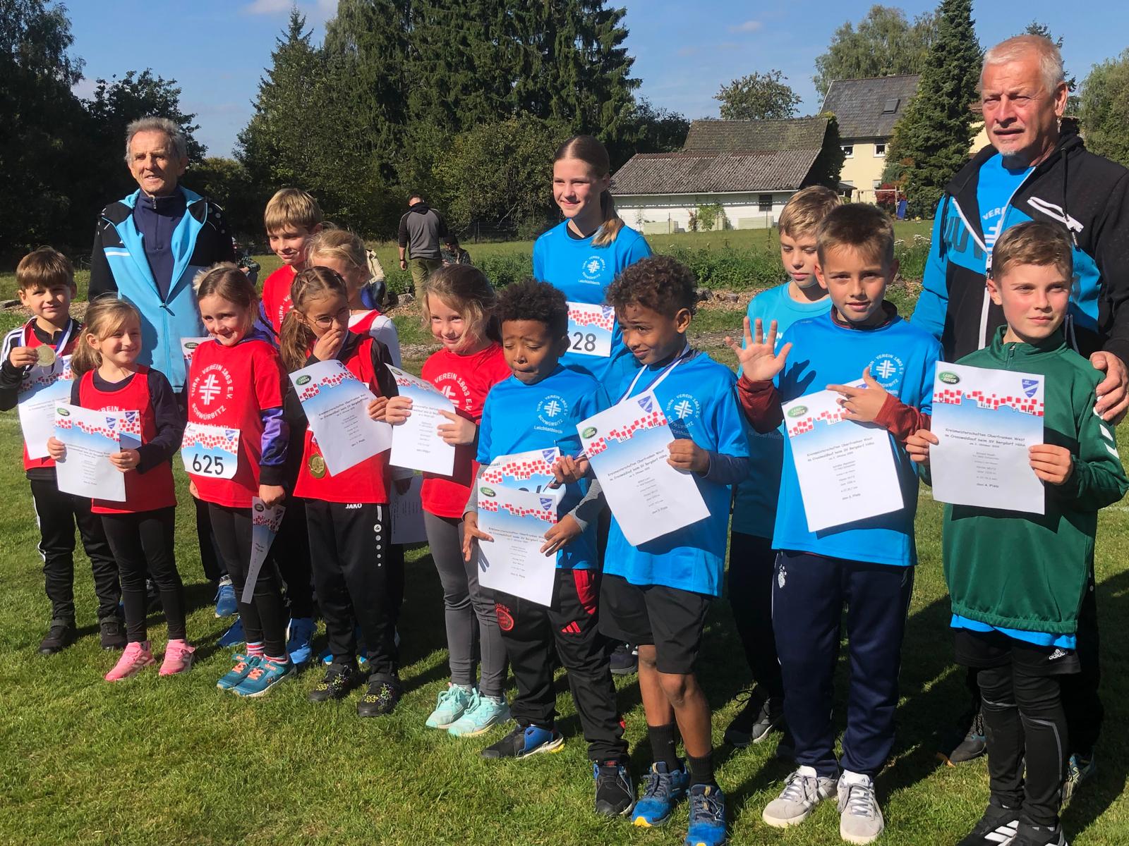 In der Klasse WU 14 über 2500 Meter erlief Leonie Mager, die das erste Mal über diese Distanz startete mit 13:06,17 einen hervorragenden 4. Platz. In den Mannschaftswertungen holten sich in der Klasse WU8 Anna Zarske, Lia Herbst und Emma Stettner den 2. Platz, bei den MU 8 holten sich Vinzenz Herrmann, Nils Richter und Darren Milfort den 2. Platz. Die MU12 Mannschaft sicherte sich mit Vince Fischer, Noah Birnstil und Maximilian Scheller den 1. Platz und somit den Kreismeistertitel.