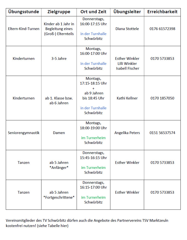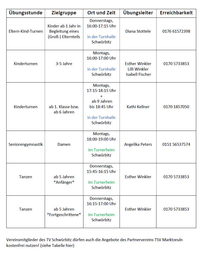 Abteilung Turnen/Gymnastik/Aerobic