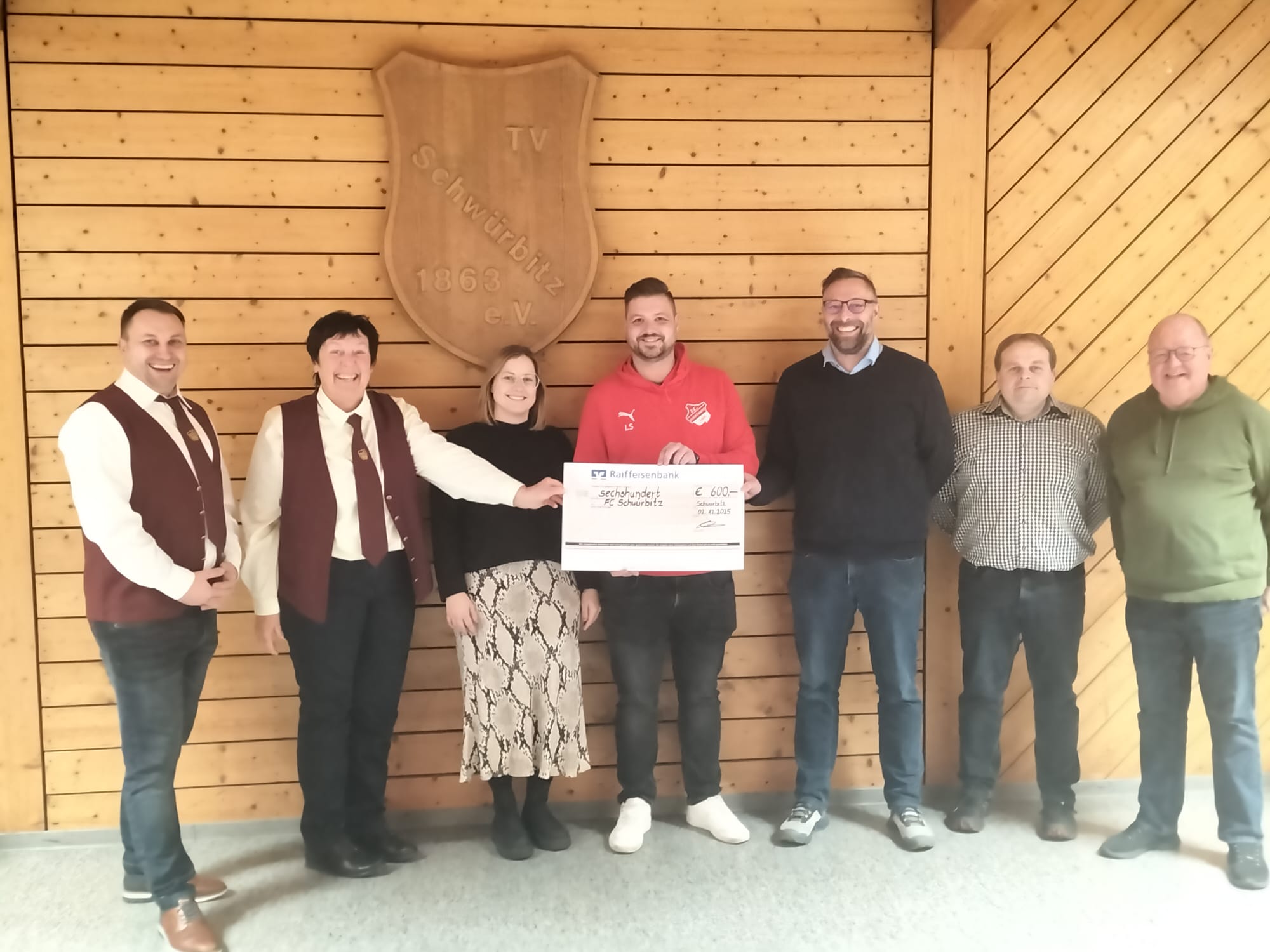 Am 2. Dezember fand im Turnerheim die offizielle Spendenübergabe statt. Vertreter der drei Vereine trafen sich zu einem gemeinsamen Abendessen, bei dem die Summe von 600 Euro an die Vorstandschaft des FC Schwürbitz überreicht wurde. Vorsitzender Lukas Schäfer bedankte sich herzlich für die Unterstützung und betonte den starken Zusammenhalt innerhalb der Vereinsgemeinschaft.